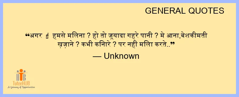 अगर ☝ हमसे मिलना ? हो तो ज़्यादा गहरे पानी ? मे आना,बेशकीमती ख़ज़ाने ? कभी किनारे ? पर नहीं मिला करते..