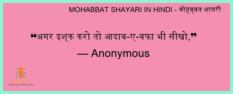 अगर इश्क करो तो आदाब-ए-वफा भी सीखो,