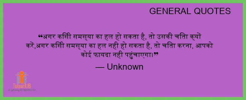 अगर किसी समस्या का हल हो सकता है, तो उसकी चिंता क्यों करें,अगर किसी समस्या का हल नही हो सकता है, तो चिंता करना, आपको कोई फायदा नही पहुंचाएगा।