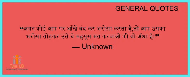 अगर कोई आप पर आँखें बंद कर भरोसा करता है,तो आप उसका भरोसा तोड़कर उसे ये महसूस मत करवाओ की वो अँधा है।