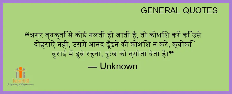 अगर व्यक्ति से कोई गलती हो जाती है, तो कोशिश करें कि उसे दोहराऐं नहीं, उसमें आनंद ढूँढने की कोशिश न करें, क्योंकि बुराई में डूबे रहना, दुःख को न्योता देता है।