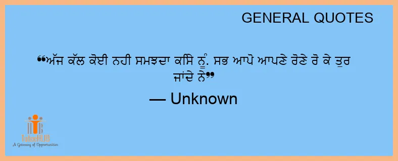 ਅੱਜ ਕੱਲ ਕੋੲੀ ਨਹੀ ਸਮਝਦਾ ਕਿਸੇ ਨੂੰ. ਸਭ ਅਾਪੋ ਅਾਪਣੇ ਰੋਣੇ ਰੋ ਕੇ ਤੁਰ ਜਾਂਦੇ ਨੇ