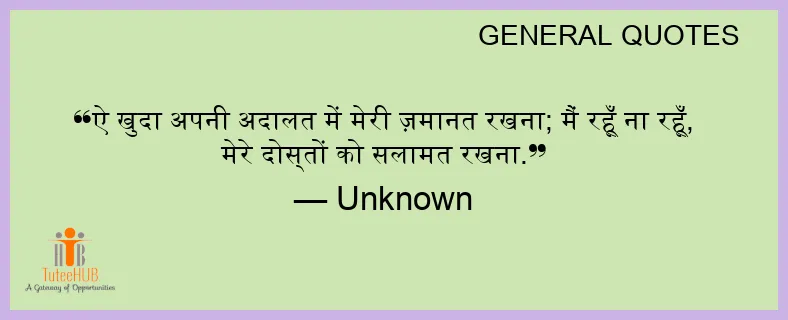 ऐ खुदा अपनी अदालत में मेरी ज़मानत रखना; मैं रहूँ ना रहूँ, मेरे दोस्तों को सलामत रखना.
