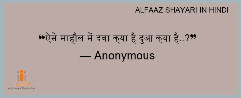 ऐसे माहौल में दवा क्या है दुआ क्या है..?