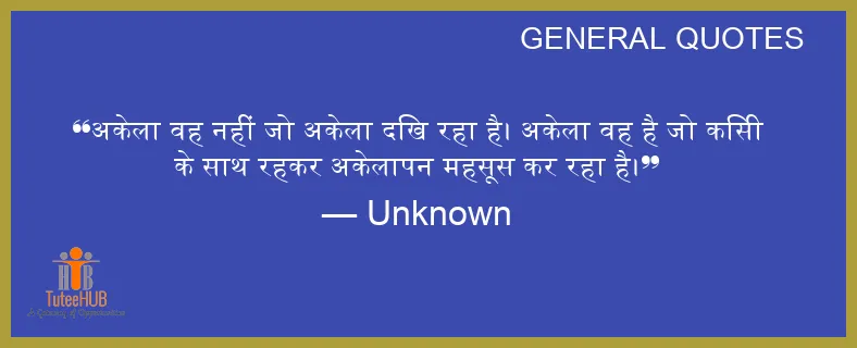 अकेला वह नहीं जो अकेला दिख रहा है। अकेला वह है जो किसी के साथ रहकर अकेलापन महसूस कर रहा है।