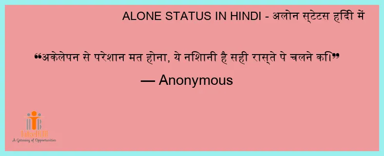 अकेलेपन से परेशान मत होना, ये निशानी है सही रास्ते पे चलने कि।