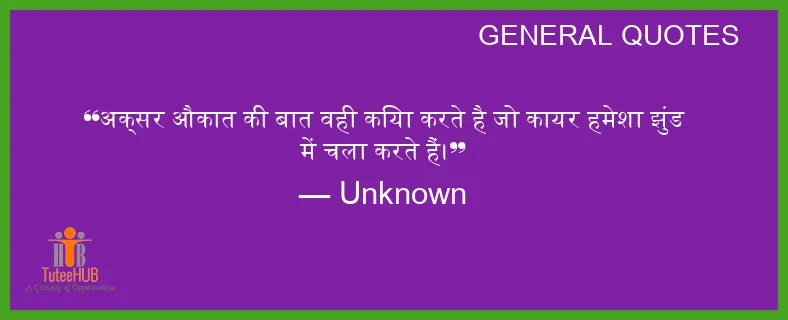 अक्सर औकात की बात वही किया करते है जो कायर हमेशा झुंड में चला करते हैं।