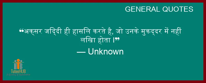 अक्सर जिद्दी ही हासिल करते है, जो उनके मुकद्दर में नहीं लिखा होता I