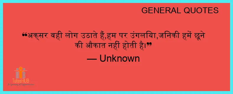 अक्सर वही लोग उठाते हैं,हम पर उंगलिया,जिनकी हमें छूने की औकात नहीं होती है।