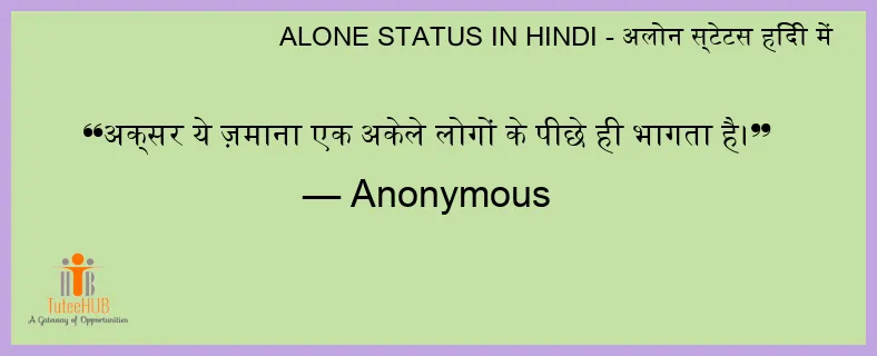 अक्सर ये ज़माना एक अकेले लोगों के पीछे ही भागता है।