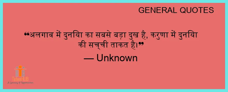 अलगाव में दुनिया का सबसे बड़ा दुख है, करुणा में दुनिया की सच्ची ताकत है।