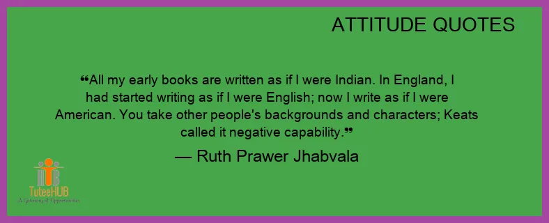 All my early books are WRITTEN as if I were INDIAN. In England, I had started writing as if I were English; now I write as if I were American. You take other people's backgrounds and characters; Keats called it NEGATIVE CAPABILITY.