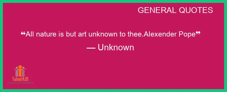 All NATURE is but ART UNKNOWN to thee.Alexender POPE