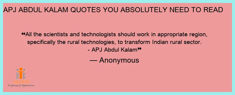 All the scientists and technologists should work in appropriate region, specifically the rural technologies, to transform Indian rural sector. - APJ Abdul Kalam