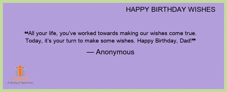 All your life, you’ve worked towards making our wishes come true. Today, it’s your turn to make some wishes. Happy Birthday, Dad!