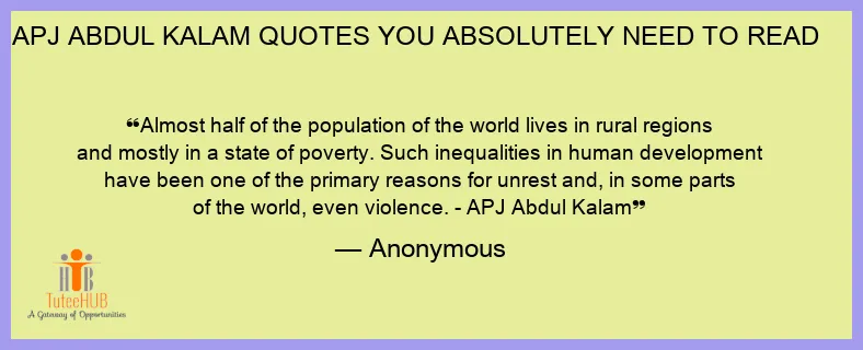 Almost half of the population of the world lives in rural regions and mostly in a state of poverty. Such inequalities in human development have been one of the primary reasons for unrest and, in some parts of the world, even violence. - APJ Abdul Kalam