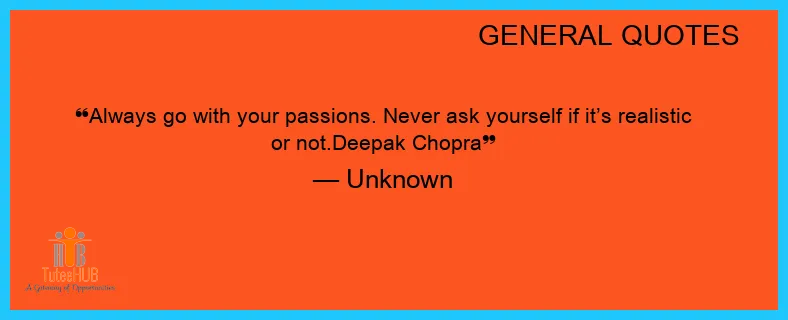 ALWAYS GO with your passions. Never ASK yourself if it’s realistic or not.Deepak Chopra