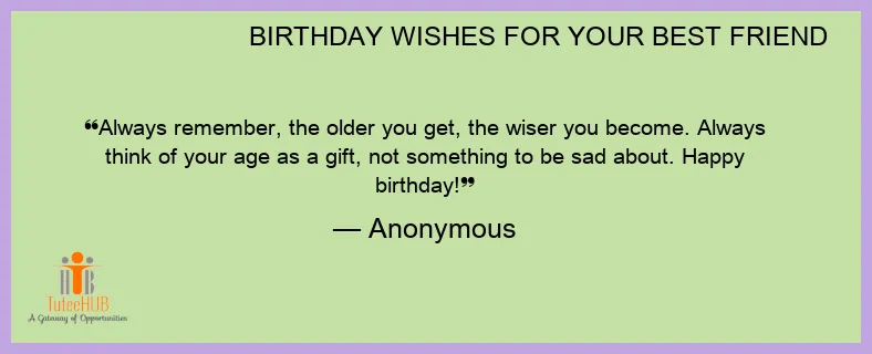 Always remember, the older you get, the wiser you become. Always think of your age as a gift, not something to be sad about. Happy birthday!