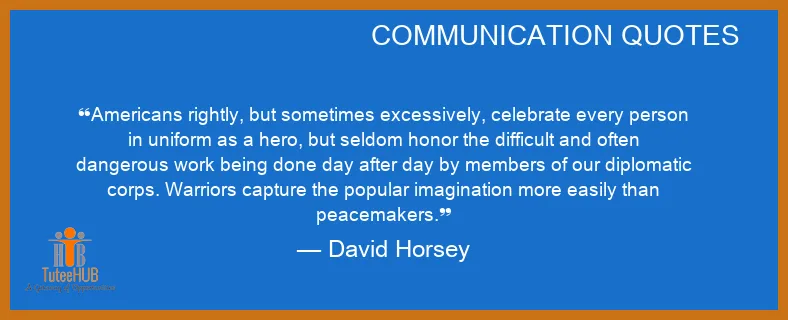 Americans rightly, but sometimes excessively, celebrate every PERSON in UNIFORM as a hero, but SELDOM honor the DIFFICULT and often dangerous work being done day after day by members of our diplomatic corps. WARRIORS capture the popular imagination more easily than peacemakers.