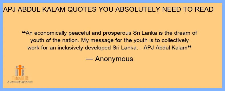 An economically peaceful and prosperous Sri Lanka is the dream of youth of the nation. My message for the youth is to collectively work for an inclusively developed Sri Lanka. - APJ Abdul Kalam