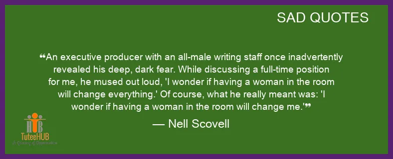 An EXECUTIVE producer with an all-male writing staff once inadvertently revealed his deep, DARK fear. While discussing a full-time position for me, he mused out loud, 'I wonder if having a woman in the room will CHANGE everything.' Of COURSE, what he really MEANT was: 'I wonder if having a woman in the room will change me.'