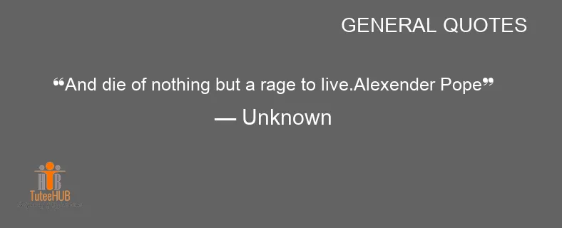 And DIE of NOTHING but a RAGE to live.Alexender POPE
