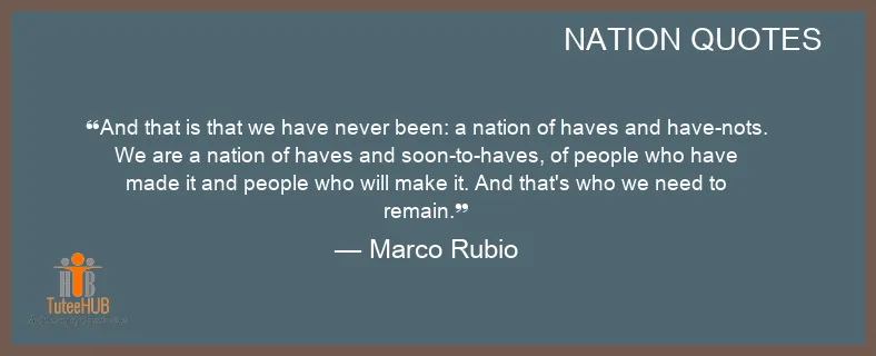 And that is that we have never been: a NATION of haves and have-nots. We are a nation of haves and soon-to-haves, of PEOPLE who have MADE it and people who will MAKE it. And that's who we need to remain.