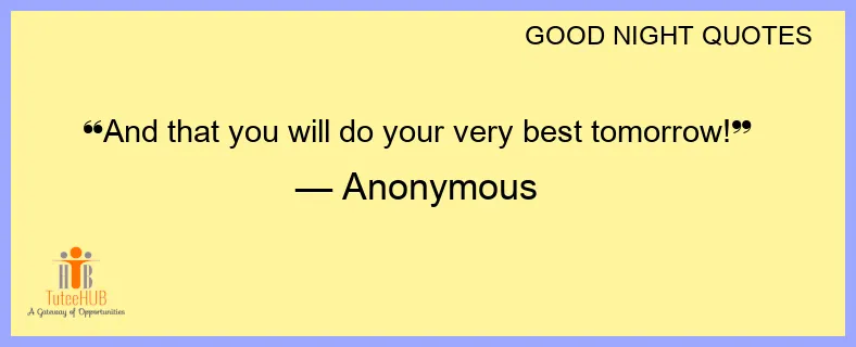 And that you will do your very best tomorrow!