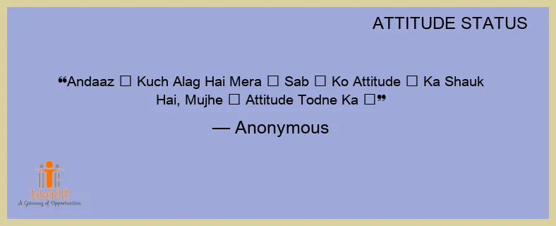 Andaaz 😎 Kuch Alag Hai Mera 🚶 Sab 👥 Ko Attitude 👿 Ka Shauk Hai, Mujhe 👤 Attitude Todne Ka 😈