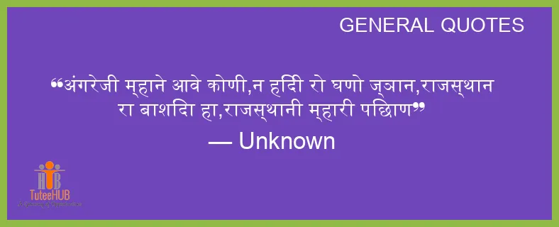 अंगरेजी म्हाने आवे कोणी,न हिंदी रो घणो ज्ञान,राजस्थान रा बाशिंदा हा,राजस्थानी म्हारी पिछाण