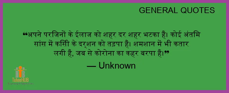 अपने परिजनों के ईलाज को शहर दर शहर भटका हैं। कोई अंतिम सांस में किसी के दर्शन को तड़पा हैं। शमशान में भी कतार लगी हैं, जब से कोरोना का कहर बरपा हैं।
