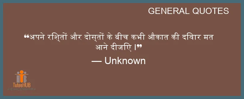अपने रिश्तों और दोस्तों के बीच कभी औकात की दिवार मत आने दीजिए I