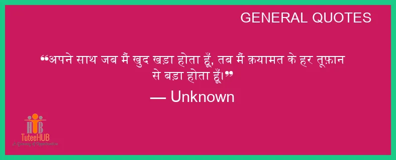 अपने साथ जब मैं खुद खड़ा होता हूँ, तब मैं क़यामत के हर तूफ़ान से बड़ा होता हूँ।