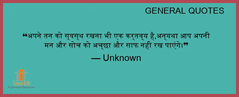 अपने तन को स्वस्थ रखना भी एक कर्तव्य है,अन्यथा आप अपनी मन और सोच को अच्छा और साफ नही रख पाएंगे।