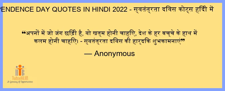 अपनों में जो जंग छिड़ी है, वो खत्म होनी चाहिए, देश के हर बच्चे के हाथ में कलम होनी चाहिए। - स्वतंत्रता दिवस की हार्दिक शुभकामनाएं