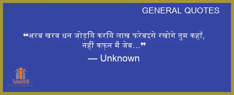 अरब खरब धन जोड़िये करिये लाख फरेबइसे रखोगे तुम कहाँ, नहीं कफ़न मैं जेब…