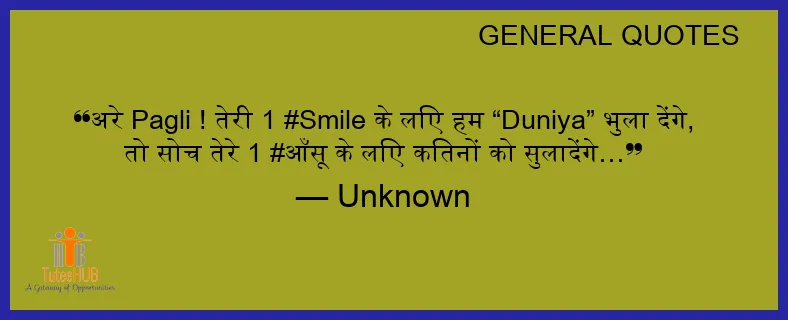 अरे Pagli ! तेरी 1 #SMILE के लिए हम “Duniya” भुला देंगे, तो सोच तेरे 1 #आँसू के लिए कितनों को सुलादेंगे…