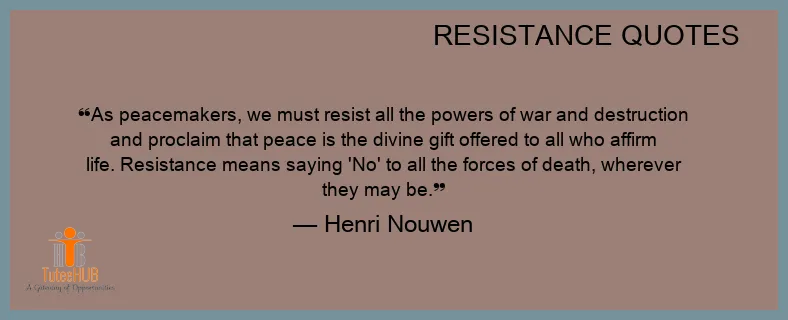 As peacemakers, we must RESIST all the powers of WAR and destruction and proclaim that peace is the DIVINE gift offered to all who affirm life. RESISTANCE means saying 'No' to all the forces of death, wherever they may be.
