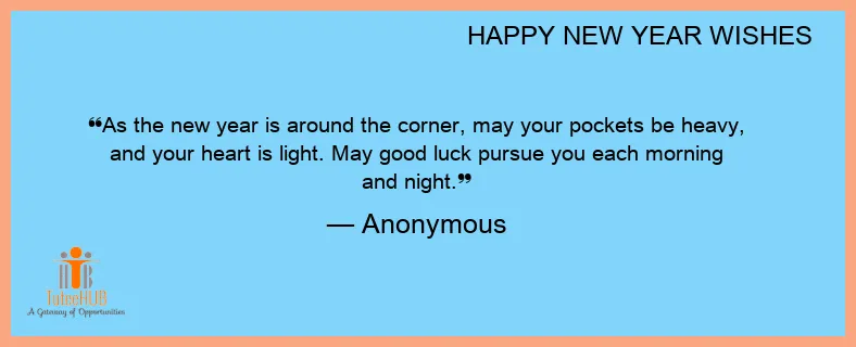 As the new year is around the corner, may your pockets be heavy, and your heart is light. May good luck pursue you each morning and night.