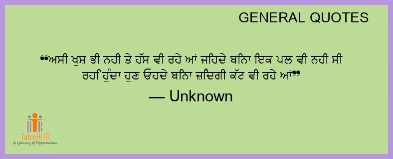 ਅਸੀਂ ਖੁਸ਼ ਭੀ ਨਹੀਂ ਤੇ ਹੱਸ ਵੀ ਰਹੇ ਆਂ ਜਿਹਦੇ ਬਿਨਾ ਇਕ ਪਲ ਵੀ ਨਹੀਂ ਸੀ ਰਹਿ ਹੁੰਦਾ ਹੁਣ ਓਹਦੇ ਬਿਨਾ ਜ਼ਿੰਦਗੀ ਕੱਟ ਵੀ ਰਹੇ ਆਂ