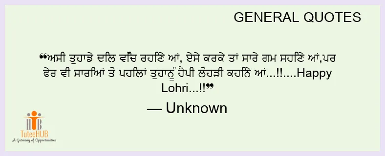 ਅਸੀਂ ਤੁਹਾਡੇ ਦਿਲ ਵਿੱਚ ਰਹਿਣੇ ਆਂ, ਏਸੇ ਕਰਕੇ ਤਾਂ ਸਾਰੇ ਗਮ ਸਹਿਣੇ ਆਂ,ਪਰ ਫੇਰ ਵੀ ਸਾਰਿਆਂ ਤੋਂ ਪਹਿਲਾਂ ਤੁਹਾਨੂੰ ਹੈਪੀ ਲੋਹੜੀ ਕਹਿਨੇ ਆਂ...!!....Happy Lohri...!!
