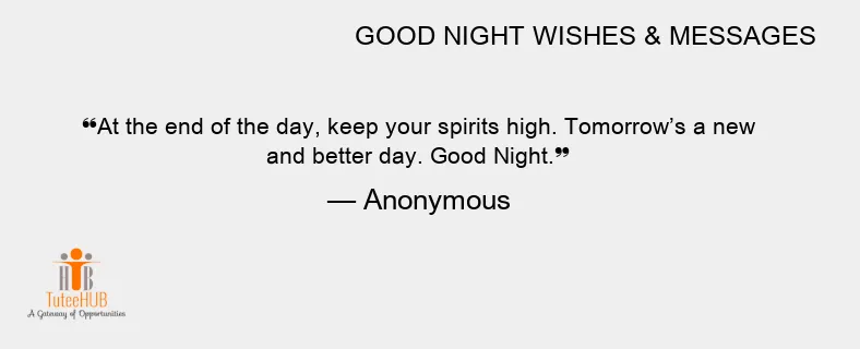 At the end of the day, keep your spirits high. Tomorrow’s a new and better day. Good Night.