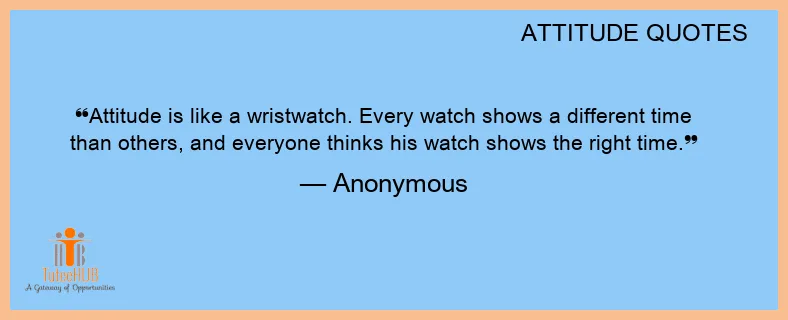 Attitude is like a wristwatch. Every watch shows a different time than others, and everyone thinks his watch shows the right time.