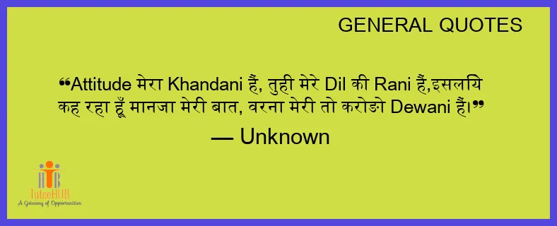 Attitude मेरा Khandani हैं, तुही मेरे DIL की Rani हैं,इसलिये कह रहा हूँ मानजा मेरी बात, वरना मेरी तो करोङो Dewani हैं।