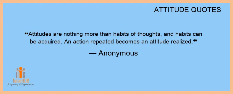Attitudes are nothing more than habits of thoughts, and habits can be acquired. An action repeated becomes an attitude realized.