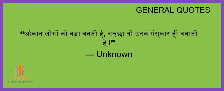 औकात लोगों को बड़ा बनती है, अच्छा तो उनके संस्कार ही बनाती है I