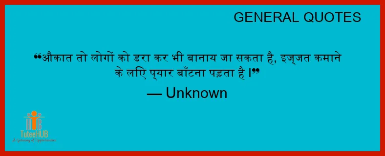 औकात तो लोगों को डरा कर भी बानाय जा सकता है, इज्जत कमाने के लिए प्यार बाँटना पड़ता है I