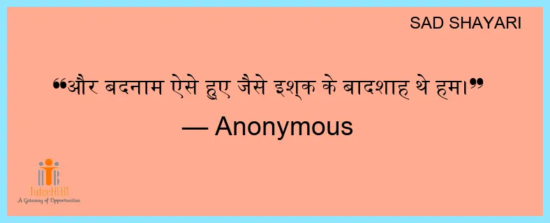 और बदनाम ऐसे हुए जैसे इश्क के बादशाह थे हम।