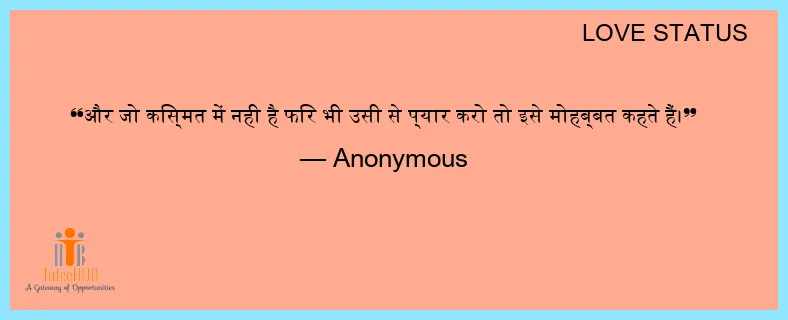 और जो किस्मत में नही है फिर भी उसी से प्यार करो तो इसे मोहब्बत कहते हैं।