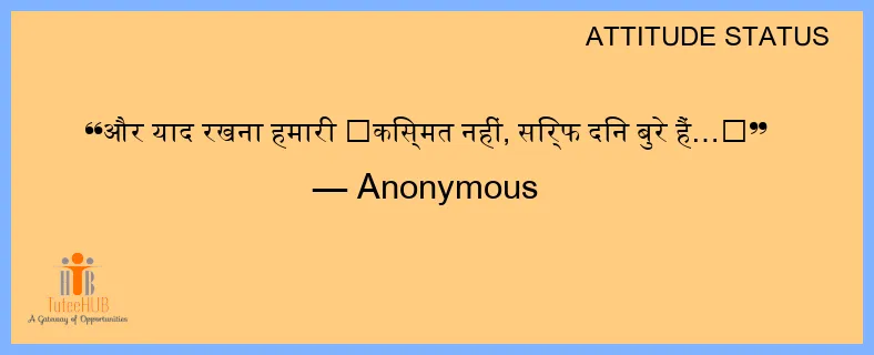 और याद रखना हमारी 🙂किस्मत नहीं, सिर्फ दिन बुरे हैं…😒